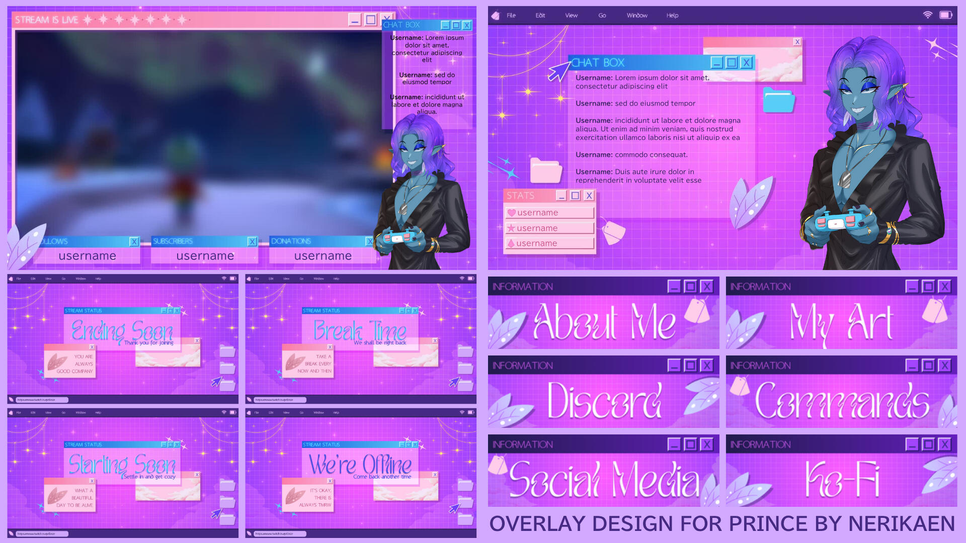 Repeat designs eligible for package. Custom high detail BG (see background commissions) will require additional quote.Single Overlay Screen - £20-40 pending on complexityPanels Package - £15